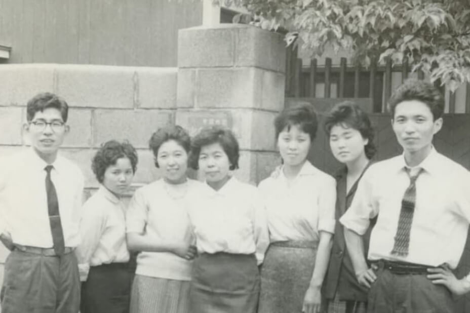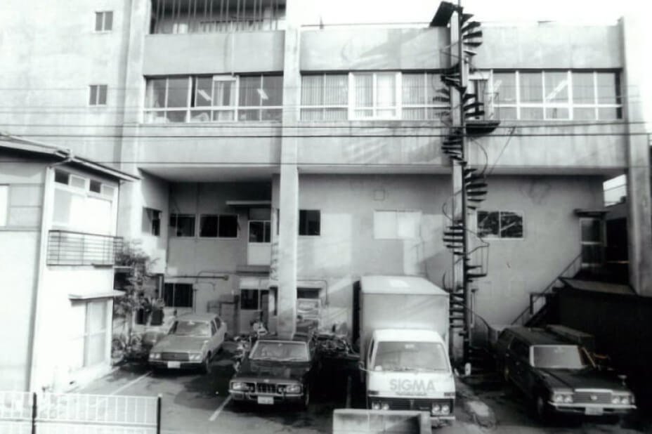 Wczesne dni, około 1961 r., przed Sigma Research Institute Co., Ltd. w dzielnicy Setagaya. Członkowie wspierający zbierają się do grupowego zdjęcia. (Michihiro Yamaki po prawej).